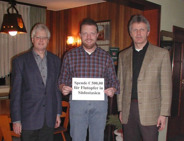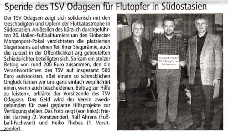 Das Bild zeigt den 2. Vorsitzenden Friedel Hartwig, FFW Ralf Ahrens und den 1. Vorsitzenden Heiko Thebes vom Vorstand des TSV Odagsen