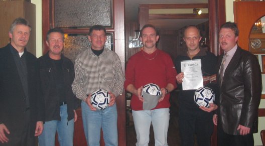 Bei der JHV 2004 haben wir Drei Sportkameraden geehrt. Alle 3 spielen seit nunmehr 20 Jahren Fussball für den TSV Odagsen. 20 Jahre Fussball im Herrenbereich ist schon etwas besonderes und dann für einen Verein, für eine Mannschaft das ist aller Ehren wert. Sogar der Name der Mannschaft hat gewechselt, Ihre Treue zu uns ist aber konstant geblieben. Alle Meisterschaften und Pokale wären ohne diese Drei nicht denkbar. Wir hatten für diese verdienten Spieler eine ausgesuchte Rarität: je einen Ball mit den Unterschriften der heutigen Mannschaft und der verdienten Ehemaligen.
