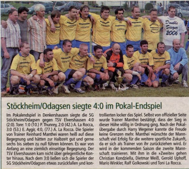 Am 30.04.2006 in Stöckheim gegen Langenholtensen 3:0 Torschützen C. Kondziella, T. Özdogan, T. La Rocca |
